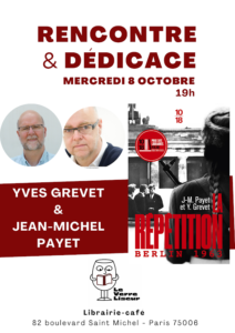 Jeudi 2 octobre est sorti chez 10/18 La Répétition, Berlin 63, un roman d’espionnage que j’ai écrit avec Jean-Michel Payet.